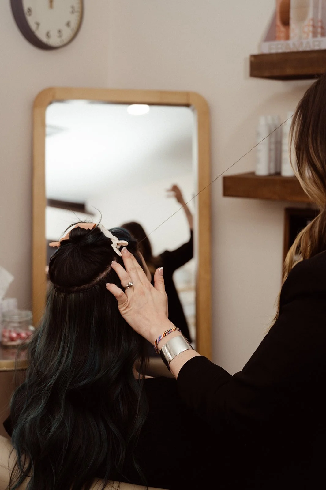 30 minute application of 1 pack of tape-in extensions on cleansed, minimal product and dry hair. Ideal for filling density in the front hairline perimeter. Another option for adding “chemical free” highlights/fashion colors to your existing style.