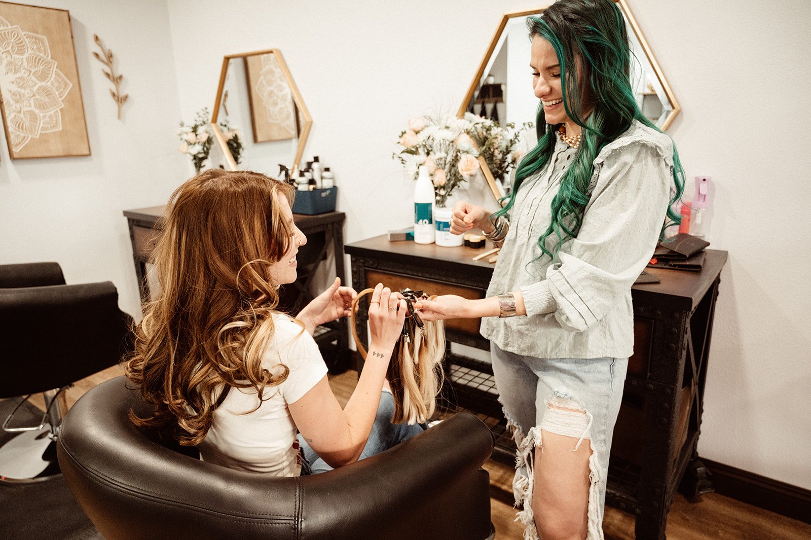 Test-Strand Consultation, Extension Consultation, Custom and Curly Haircut, Full Balayage, Full color (Roots-to-Ends), or Full Highlight.