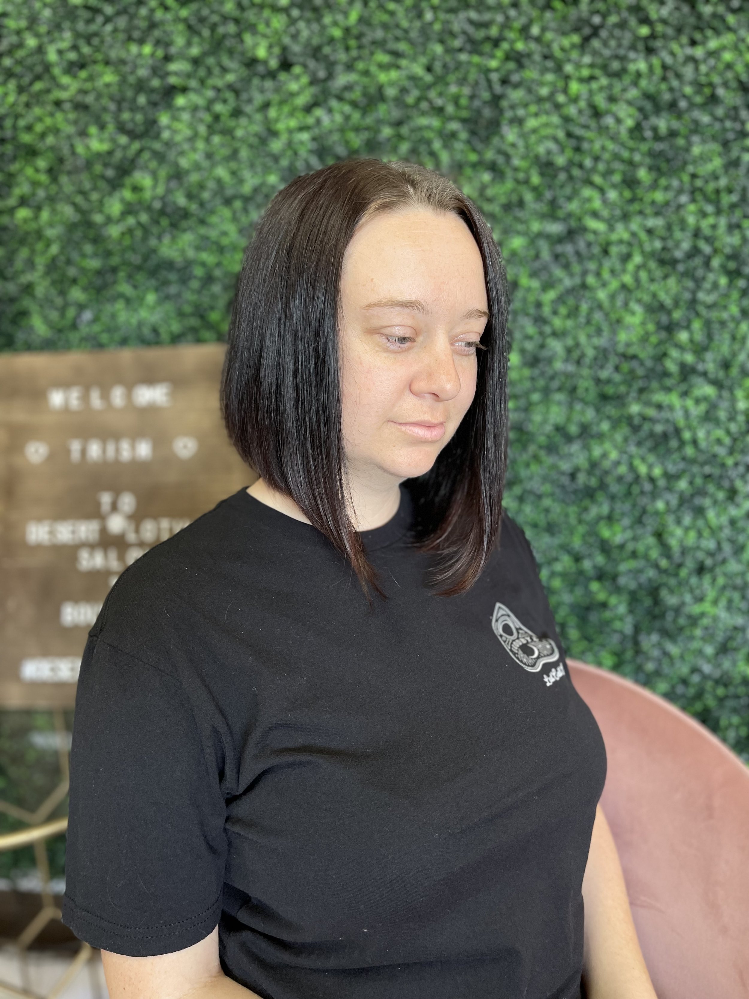 “I moved to pahrump from LV, I was told hands down you have to see diana in Desert lotus salon. she was visualizing my lifestyle and what would work best with my needs. four weeks post-visit my hair still feels manageable and silky!”