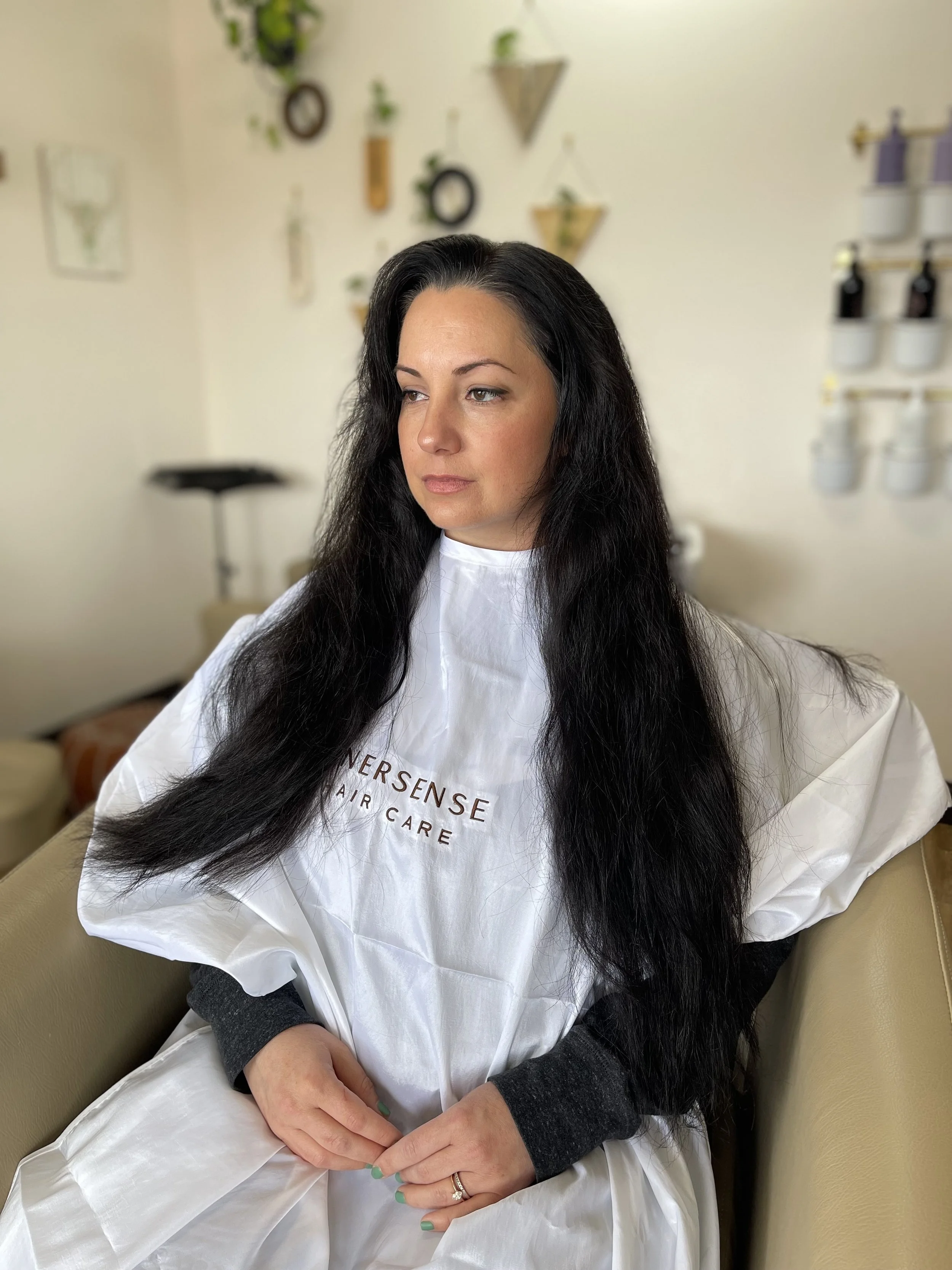 Sarah’s Experience: Curly/Custom for fine density with additional time for long hair, maintained every 8 weeks to remove past breakage.